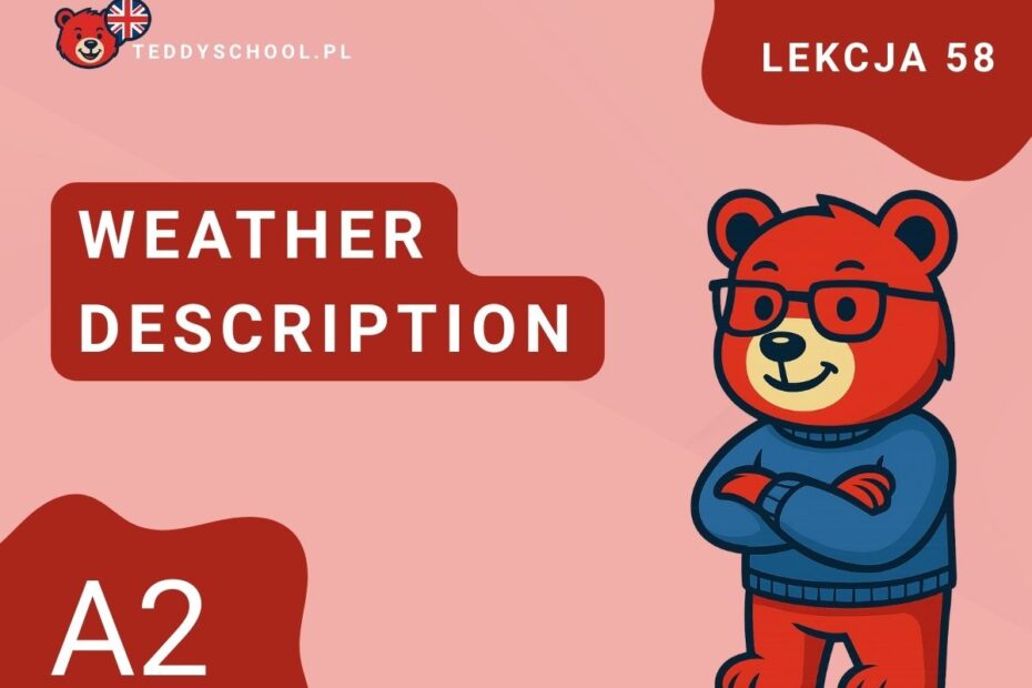 - Przy opisywaniu pogody najczęściej używamy konstrukcji „It’s + przymiotnik” lub „It’s + czasownik z końcówką -ing”.